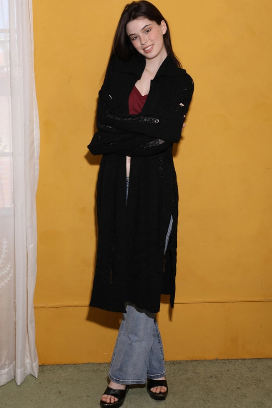 • Load image into Gallery viewer, Distressed Cardigan Sweater Black