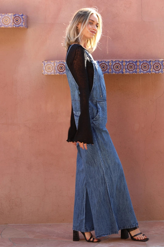 Step into retro-cool style with these denim flare leg overalls! This playful jumpsuit combines classic 90s vibes with modern comfort, featuring wide-leg flares that elongate your silhouette and adjustable shoulder straps for the perfect fit. The front pockets and chest bib keep things functional while the timeless denim wash works with everything in your wardrobe. Whether you're heading to brunch, running errands, or making a statement at your next outing, this versatile piece proves that overalls are always in style.