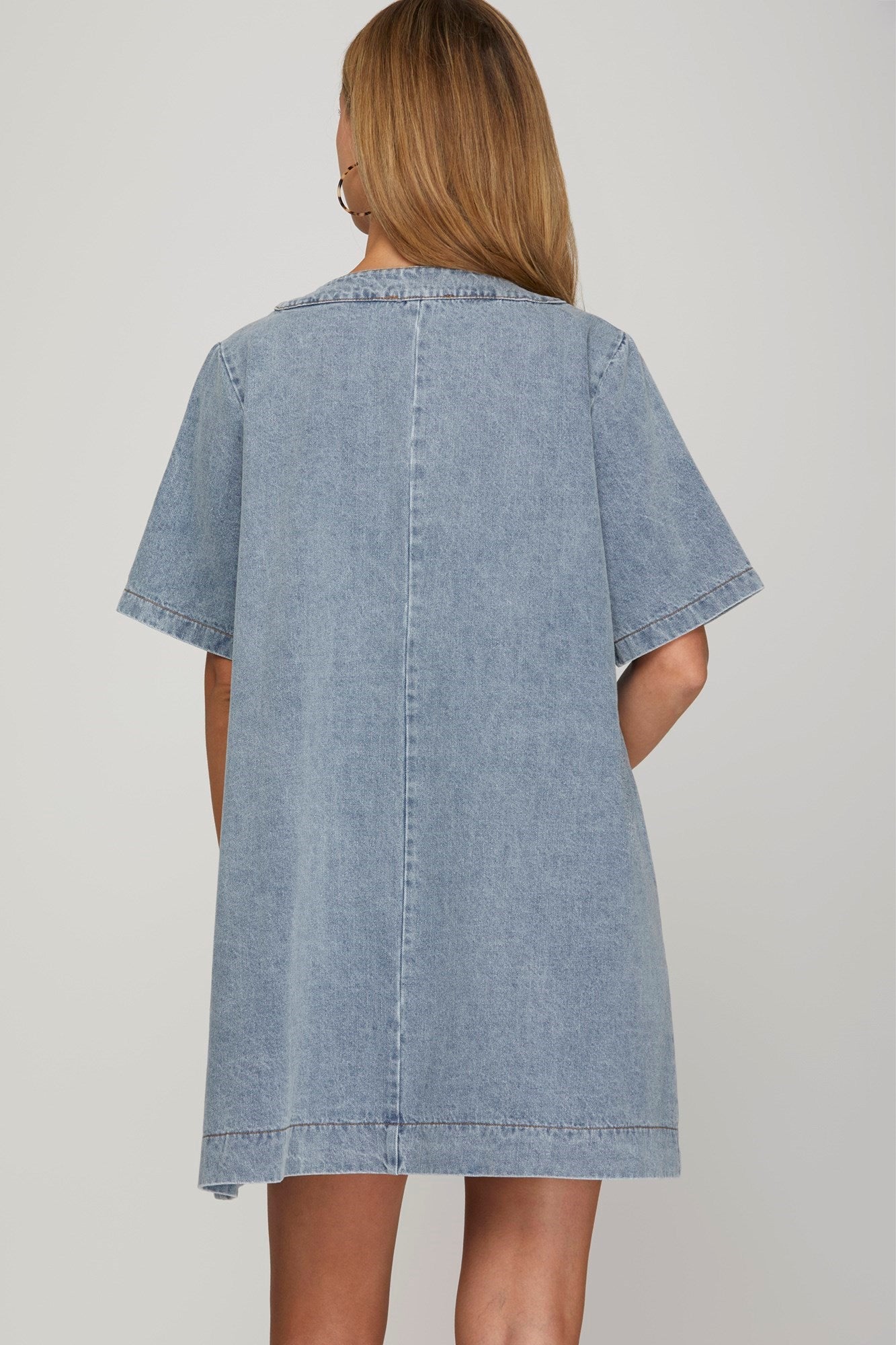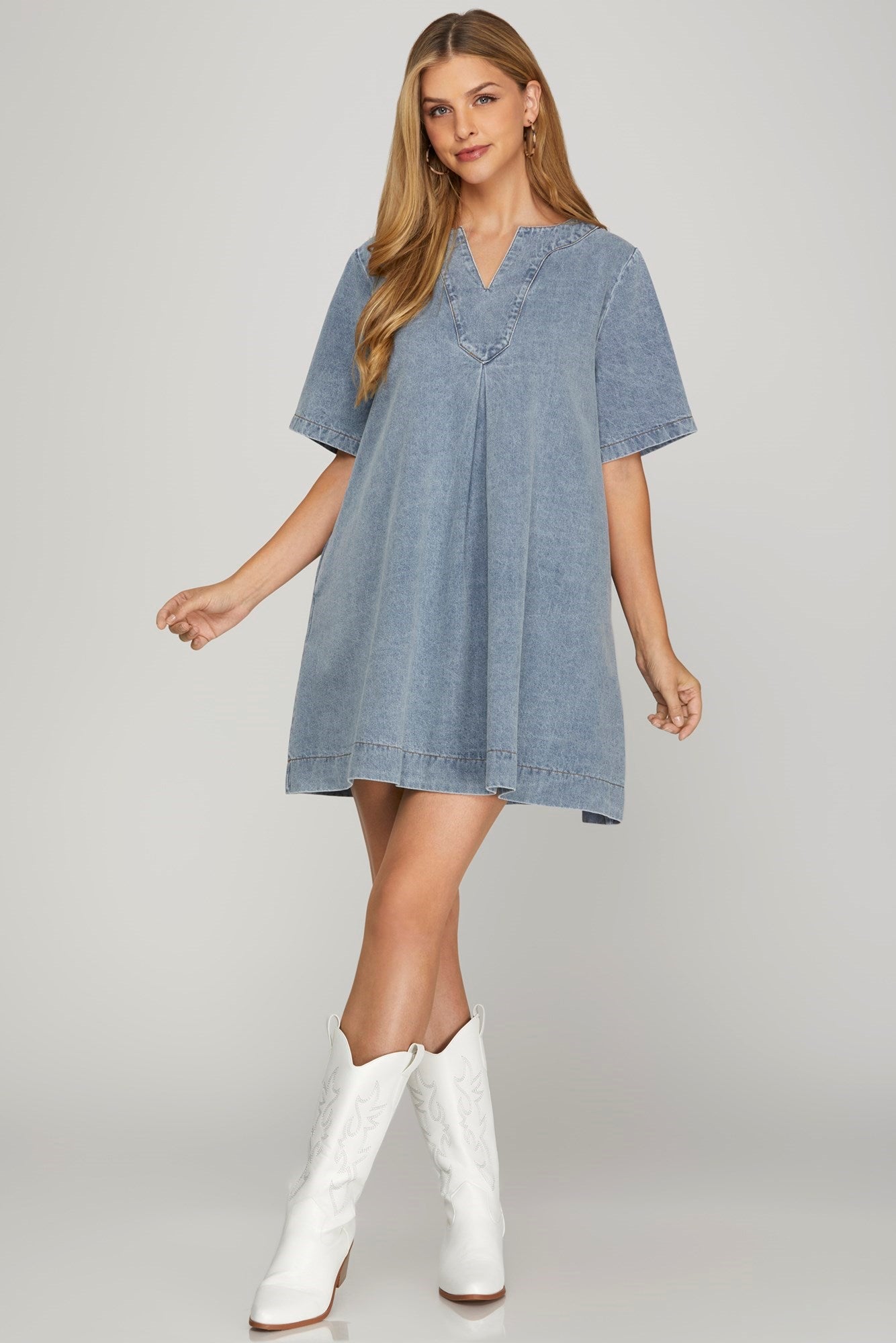 This Denim Shift Dress is your new go-to for effortless charm. Its relaxed fit lets you move freely while keeping things stylishly simple. Perfect for sunny days or casual nights out, it pairs easily with your favorite sneakers or sandals. Slip into this playful piece and let your outfit do the talking!