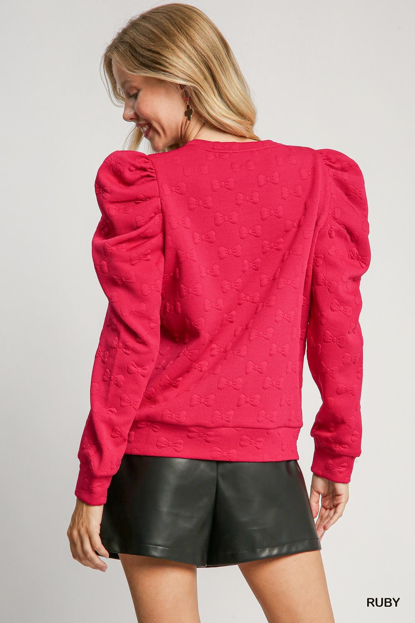 Dive into effortless style with this charming Jacquard Round Neck Top! Featuring a gorgeous ribbon jacquard pattern that catches the light just right, this boxy beauty offers a relaxed, modern silhouette that works with everything in your closet. The shirred sleeves add a touch of playful detail, while the classic boatneck keeps things chic and timeless. Perfect for layering or wearing solo, this versatile piece is your new go-to for casual elegance with personality.
