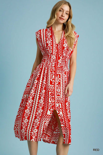 V Neck Smocked Bust Wide Bell Sleeve Floral Blouse