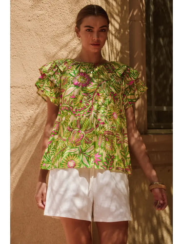 Colorful Abstract Print Flutter Sleeve Mini Dress