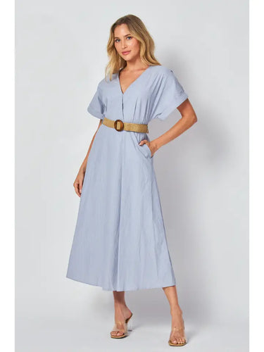 Stripe Print Short Sleeve V-Neck Maxi Dress with Belt
