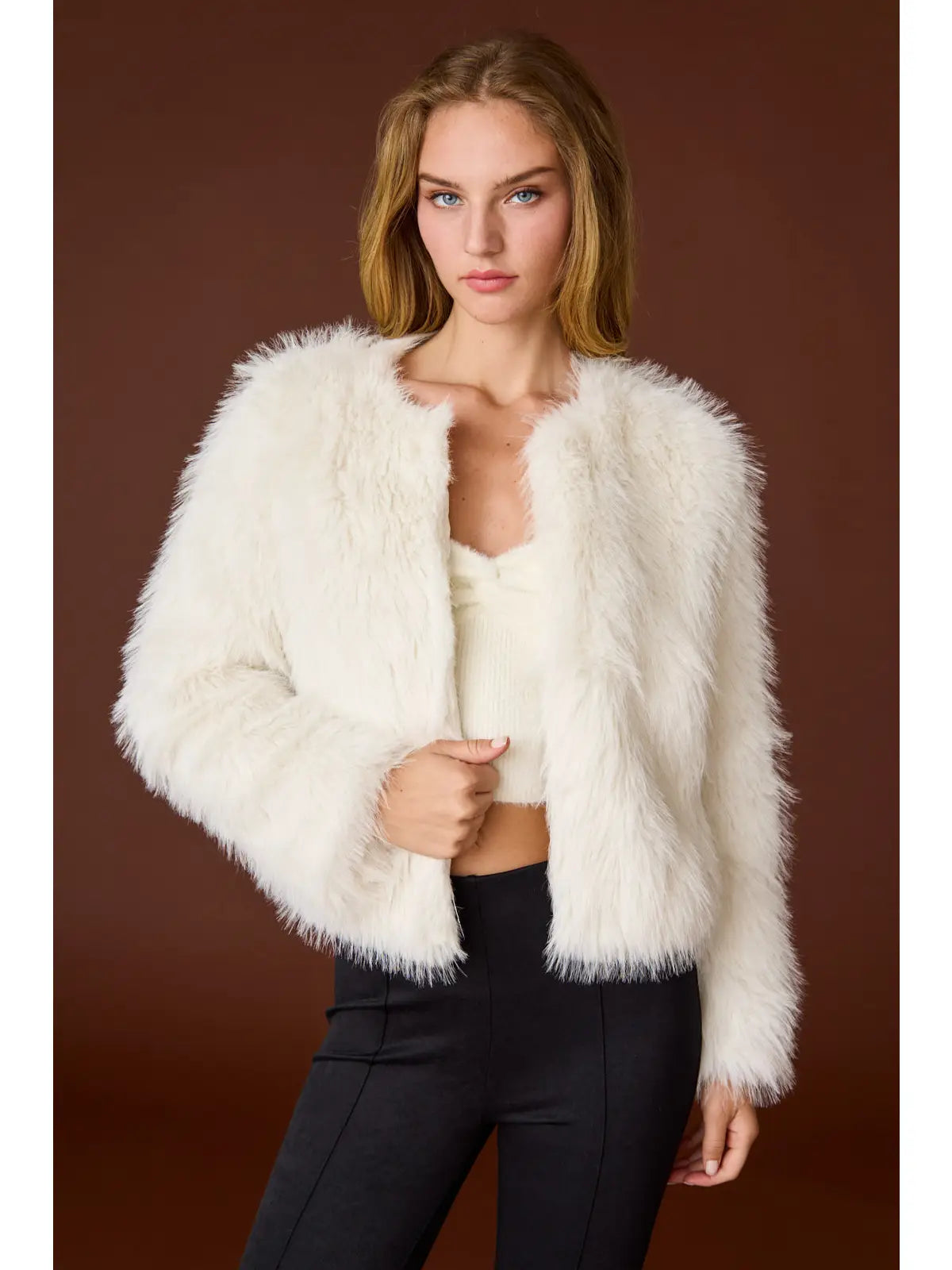 Stay stylish and cozy this holiday season with our Cream Fur Jacket! Perfect for any occasion, this jacket will add a touch of warmth and luxury to your outfit. Don't miss out on the chance to elevate your winter wardrobe!