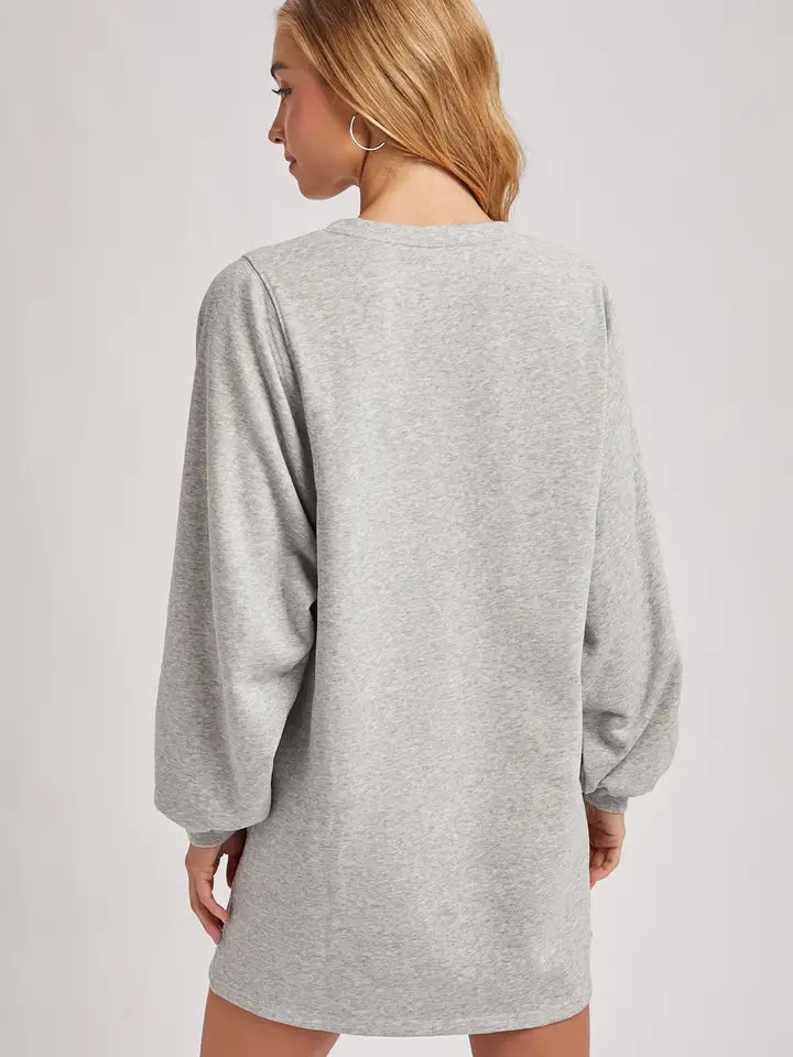 Crew Neck Oversized Sweatshirt Dress with Pockets Grey